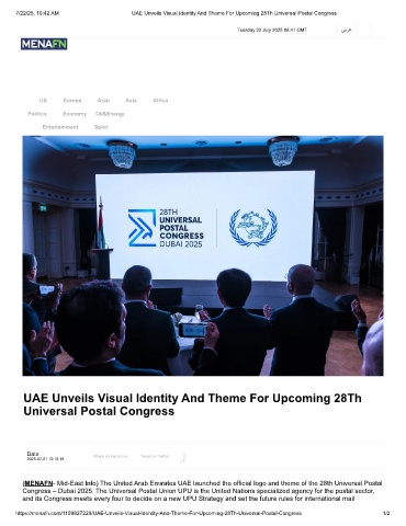 https://menafn.com/1109827229/UAE-Unveils-Visual-Identity-And-Theme-For-Upcoming-28Th-Universal-Postal-Congress 1/2