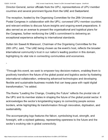7/22/25, 10:45 AM UAE Unveils Visual Identity, Theme For 28th Universal Postal Congress - UrduPoint