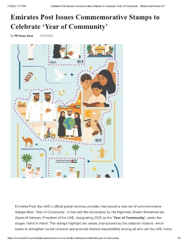 7/18/25, 1:31 PM Emirates Post Issues Commemorative Stamps to Celebrate ‘Year of Community’ - Middle East News 247