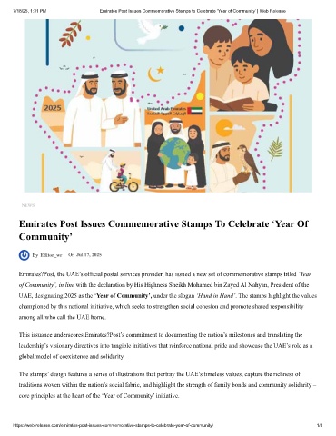 7/18/25, 1:31 PM Emirates Post Issues Commemorative Stamps to Celebrate ‘Year of Community’ | Web Release