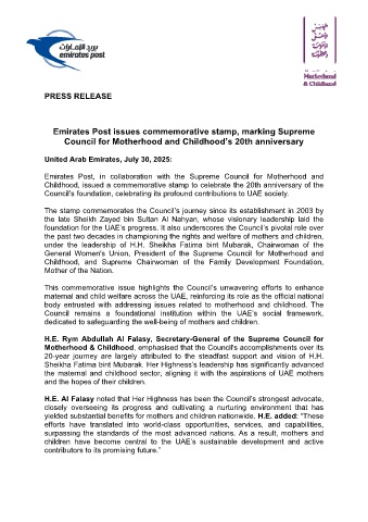Emirates  Post,  in  collaboration  with  the  Supreme  Council  for  Motherhood  and