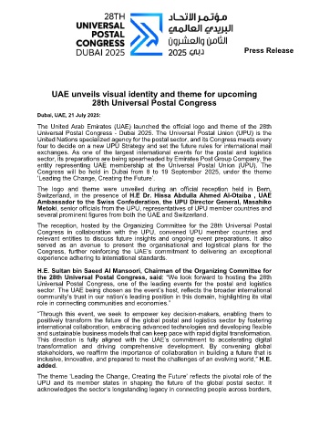 entity  representing  UAE  membership  at  the  Universal  Postal  Union  (UPU).  The