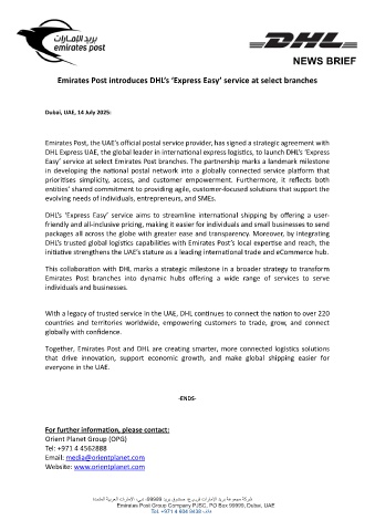 DHL’s trusted global logis cs capabili es with Emirates Post’s local exper se and reach, the