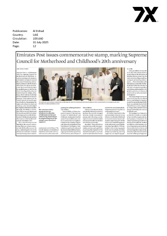 Publication: Al Etihad Country: UAE Circulation: 109,640 Date: 31 July 2025 Page: 12
