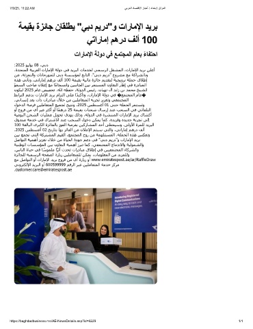 ﻊﻣ ﻞﺻاﻮﺘﻟا وأ تارﺎﻣﻹا ﺪﻳﺮﺑ عوﺮﻓ ﻦﻣ يأ ةرﺎﻳز وأ www.emiratespost.ae/ar/RaffleDraw
