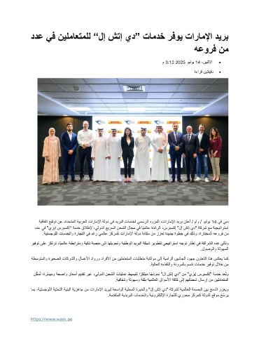 ةيقافتا عيقوت نع ،ةدحتملا ةيبرعلا تاراملإا ةلود يف ديربلا تامدخل يمسرلا دوزملا ،تاراملإا ديرب نلعأ / ماو / ويلوي 14 يف يبد