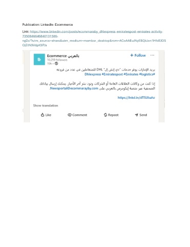 Publication: LinkedIn- Ecommerce Link: https://www.linkedin.com/posts/ecommaraby_dhlexpress-emiratespost-emirates-activity- 7350846646840131586- ngZc/?utm_source=share&utm_medium=member_desktop&rcm=ACoAAEuJNyEBQkJon1HfdEJDS OjEtN9VdpK9PJs