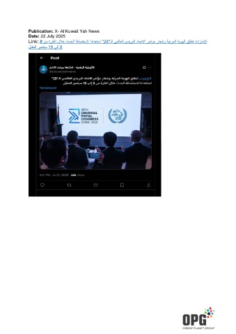Publication: X- Al Kuwait Yah News Date: 22 July 2025 Link: # نﻣ ةرﺗﻔﻟا لﻼﺧ ثدﺣﻟا ﺔﻓﺎﺿﺗﺳﻻ ادادﻌﺗﺳا "28"ـﻟا ﻲﻣﻟﺎﻌﻟا يدﯾرﺑﻟا دﺎﺣﺗﻻا رﻣﺗؤﻣ رﺎﻌﺷو ﺔﯾﺋرﻣﻟا ﺔﯾوﮭﻟا ﻖﻠطﺗ تارﺎﻣﻹا لﺑﻘﻣﻟا رﺑﻣﺗﺑﺳ 19 ﻰﻟإ 8