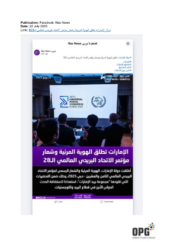 Publication: Facebook- Nas News Date: 22 July 2025 Link: #28ـﻟا ﻲﻣﻟﺎﻌﻟا يدﯾرﺑﻟا دﺎﺣﺗﻻا رﻣﺗؤﻣ رﺎﻌﺷو ﺔﯾﺋرﻣﻟا ﺔﯾوﮭﻟا ﻖﻠطﺗ تارﺎﻣﻹا_ﺔﻟود