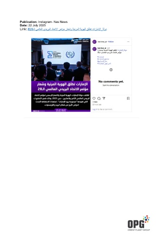 Publication: Instagram- Nas News Date: 22 July 2025 Link: #28ـﻟا ﻲﻣﻟﺎﻌﻟا يدﯾرﺑﻟا دﺎﺣﺗﻻا رﻣﺗؤﻣ رﺎﻌﺷو ﺔﯾﺋرﻣﻟا ﺔﯾوﮭﻟا ﻖﻠطﺗ تارﺎﻣﻹا_ﺔﻟود