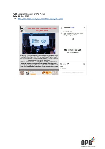 Publication: Instagram- BUAE News Date: 22 July 2025 Link: 28ـﻟا ﻲﻣﻟﺎﻌﻟا يدﯾرﺑﻟا دﺎﺣﺗﻻا رﻣﺗؤﻣ رﺎﻌﺷو ﺔﯾﺋرﻣﻟا ﺔﯾوﮭﻟا ﻖﻠطﺗ تارﺎﻣﻹا