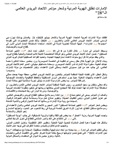 ﻲﺑد (زﻮﯿﻧ ﭧﻨﺋاﻮﭘ نﺎﺘﺴﮐﺎﭘ 21 ء2025 ﻮﯿﻟﻮﯾ) رﺎﻌﺸﻟاو ﺔﯿﺋﺮﻤﻟا ﺔﯾﻮﮭﻟا ،ةﺪﺤﺘﻤﻟا ﺔﯿﺑﺮﻌﻟا تارﺎﻣﻹا ﺔﻟود ﺖﻘﻠطأ