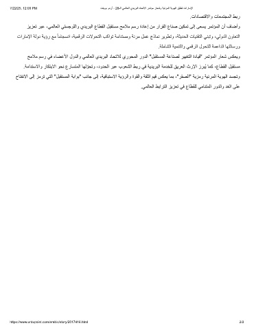 ﺢﻣﻼﻣ مﺳر ﻲﻓ ءﺎﺿﻋﻷا لودﻟاو ﻲﻣﻟﺎﻌﻟا يدﯾرﺑﻟا دﺎﺣﺗﻼﻟ يروﺣﻣﻟا رودﻟا "لﺑﻘﺗﺳﻣﻟا ﺔﻋﺎﻧﺻﻟ رﯾﯾﻐﺗﻟا ةدﺎﯾﻗ" رﻣﺗؤﻣﻟا رﺎﻌﺷ سﻛﻌﯾو