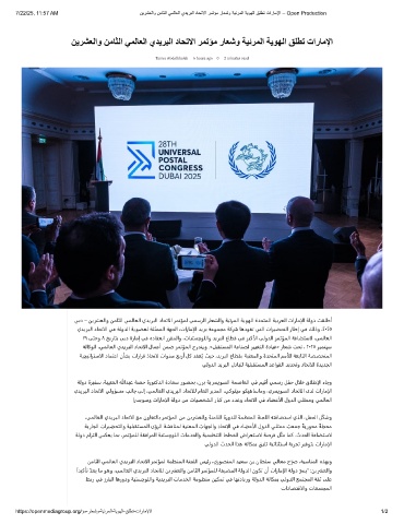 ًاﺪﻴﻛﺄﺗ ّ ﺪﻌﻳ ﺎﻣ ﻮﻫو ،ﻲﻤﻟﺎﻌﻟا يﺪﻳﺮﺒﻟا دﺎﺤﺗالﻟ ﻦﻳرشﻌﻟاو ﻦﻣﺎﺜﻟا ﺮﻤﺗﺆﻤﻠﻟ ﺔﻔﻴﻀﻤﻟا ﺔﻟوﺪﻟا نﻮﻜﺗ نأ تارﺎﻣإلا ﺔﻟود رسﻳ“ :ﻦﻳرشﻌﻟاو