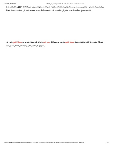 نﻣﺿ ﻊﺿﺗ ﻲﺗﻟا ،«2031 تارﺎﻣﻹا نﺣﻧ ﺔﯾؤر» تﺎﻓدﮭﺗﺳﻣ ﻊﻣ ًﺎﻣﺎﺟﺳﻧا ،ﺔﯾﻠﺑﻘﺗﺳﻣ تﺎﻌﻠطﺗو ﺔﯾﺟﯾﺗارﺗﺳا دﺎﻌﺑأ نﻣ ﮫﻠﻣﺣﯾ ﺎﻣﺑ ﻲﺑد ةرﺎﻣإ ﻲﻓ رﻣﺗؤﻣﻟا مﯾظﻧﺗ ﻲﺗﺄﯾو