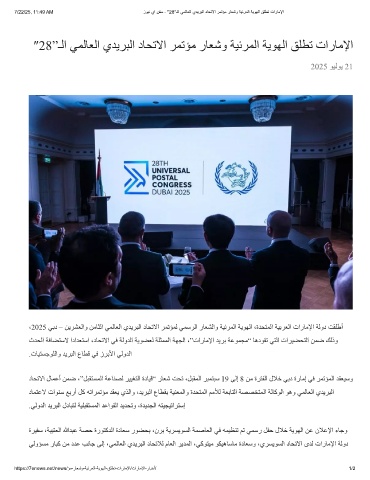،2025 ﻲﺑد – ﻦﯾﺮﺸﻌﻟاو ﻦﻣﺎﺜﻟا ﻲﻤﻟﺎﻌﻟا يﺪﯾﺮﺒﻟا دﺎﺤﺗﻻا ﺮﻤﺗﺆﻤﻟ ﻲﻤﺳﺮﻟا رﺎﻌﺸﻟاو ﺔﯿﺋﺮﻤﻟا ﺔﯾﻮﮭﻟا ،ةﺪﺤﺘﻤﻟا ﺔﯿﺑﺮﻌﻟا تارﺎﻣﻹا ﺔﻟود ﺖﻘﻠطأ