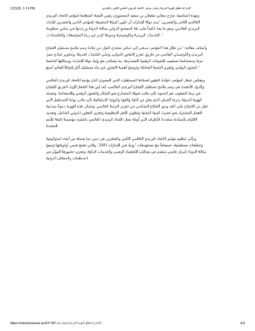 دﺎﺤﺗالﻟ ﻦﻳرشﻌﻟاو ﻦﻣﺎﺜﻟا ﺮﻤﺗﺆﻤﻠﻟ ﺔﻔﻴﻀﻤﻟا ﺔﻟوﺪﻟا نﻮﻜﺗ نأ تارﺎﻣإلا ﺔﻟود رسﻳ“ :ﻦﻳرشﻌﻟاو ﻦﻣﺎﺜﻟا ﻲﻤﻟﺎﻌﻟا