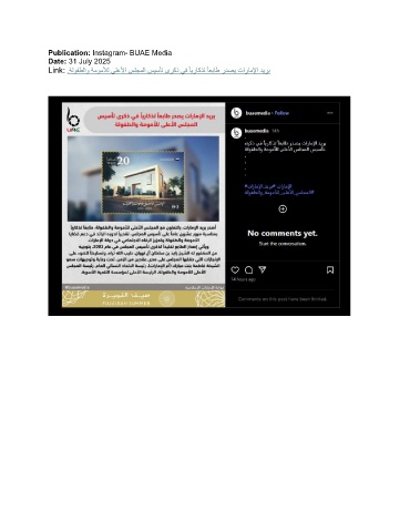 Publication: Instagram- BUAE Media Date: 31 July 2025 Link: ةلوفطلاو ةموملأل ىلعلأا سلجملا سيسأت ىركذ يف ًايراكذت ًاعباط ردصي تاراملإا ديرب .