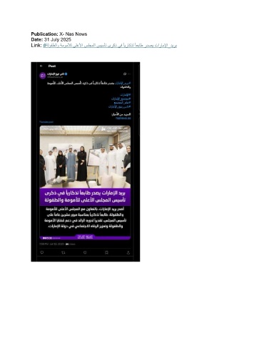 Publication: X- Nas News Date: 31 July 2025 Link: # ةلوفطلاو ةموملأل ىلعلأا سلجملا سيسأت ىركذ يف ًايراكذت ًاعباط ردصي تاراملإا_ديرب