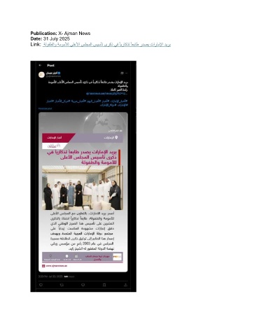 Publication: X- Ajman News Date: 31 July 2025 Link: ةلوفطلاو ةموملأل ىلعلأا سلجملا سيسأت ىركذ يف ًايراكذت ًاعباط ردصي تاراملإا ديرب