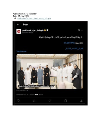 Publication: X- Oloumaldar Date: 31 July 2025 Link: ةلوفطلاو ةموملأل ىلعلأا سلجملا سيسأتل يراكذت عباط