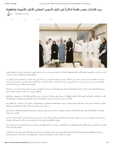 7/31/25, 11:25 AM موﯾﻟا تارﺎﻣﻹا رﺎﺑﺧأ | ﺔﻟوﻔطﻟاو ﺔﻣوﻣﻸﻟ ﻰﻠﻋﻷا سﻠﺟﻣﻟا سﯾﺳﺄﺗ ىرﻛذ ﻲﻓ ً ﺎﯾرﺎﻛذﺗ ً ﺎﻌﺑﺎط ردﺻﯾ تارﺎﻣﻹا دﯾرﺑ