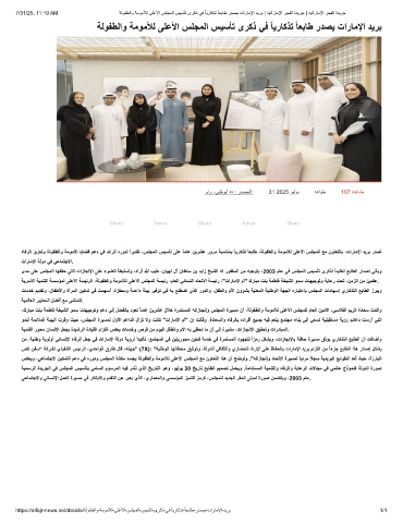 7/31/25, 11:19 AM ﺔﻟوﻔطﻟاو ﺔﻣوﻣﻸﻟ ﻰﻠﻋﻷا سﻠﺟﻣﻟا سﯾﺳﺄﺗ ىرﻛذ ﻲﻓ ً ﺎﯾرﺎﻛذﺗ ً ﺎﻌﺑﺎط ردﺻﯾ تارﺎﻣﻹا دﯾرﺑ | ﮫﯾﺗارﺎﻣﻹا رﺟﻔﻟا ةدﯾرﺟ | ﮫﯾﺗارﺎﻣﻹا رﺟﻔﻟا ةدﯾرﺟ