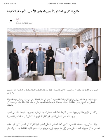 7/31/25, 10:58 AM ﺔﻟوﻔطﻟاو ﺔﻣوﻣﻸﻟ ﻰﻠﻋﻷا سﻠﺟﻣﻟا سﯾﺳﺄﺗﺑ ءﺎﻔﺗﺣا يرﺎﻛذﺗ ﻊﺑﺎط