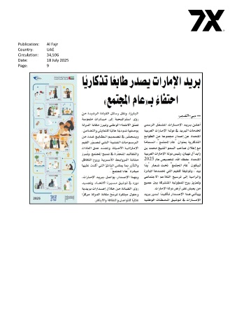 Publication: Al Fajr Country: UAE Circulation: 34,596 Date: 18 July 2025 Page: 9