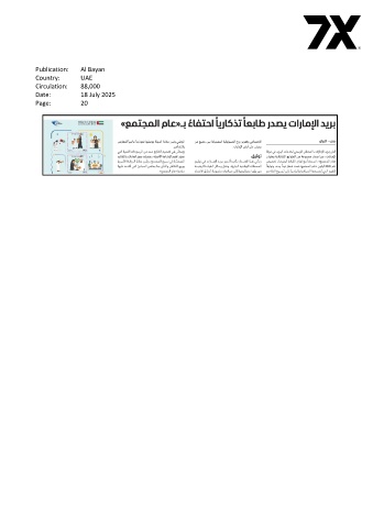 Publication: Al Bayan Country: UAE Circulation: 88,000 Date: 18 July 2025 Page: 20