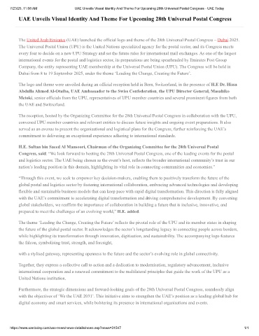 7/23/25, 11:08 AM UAE Unveils Visual Identity And Theme For Upcoming 28th Universal Postal Congress - UAE Today