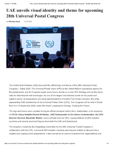 7/23/25, 11:08 AM UAE unveils visual identity and theme for upcoming 28th Universal Postal Congress - Middle East News 247