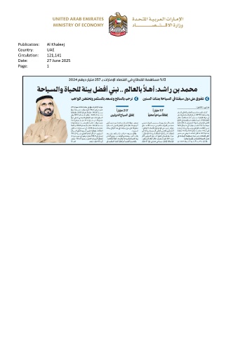 Publication: Al Khaleej Country: UAE Circulation: 121,141 Date: 27 June 2025 Page: 1