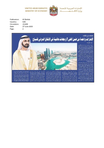 Publication: Al Wahda Country: UAE Circulation: 19,400 Date: 27 June 2025 Page: 2