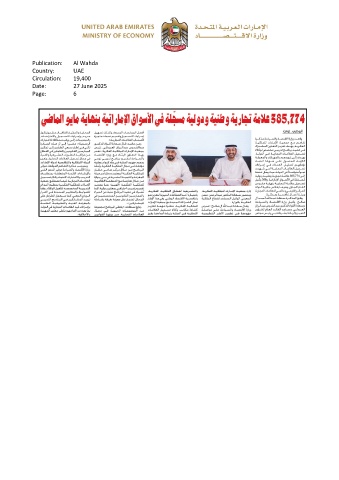 Publication: Al Wahda Country: UAE Circulation: 19,400 Date: 27 June 2025 Page: 6