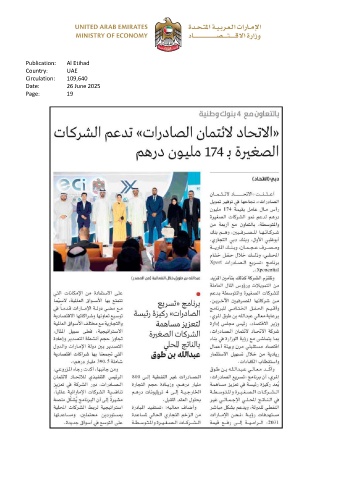 Publication: Al Etihad Country: UAE Circulation: 109,640 Date: 26 June 2025 Page: 19