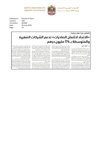 Publication: Emarat Al Youm Country: UAE Circulation: 80,000 Date: 26 June 2025 Page: 14
