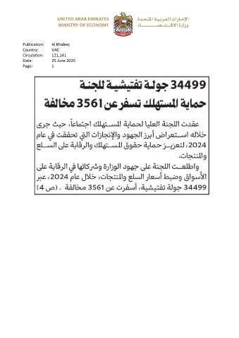 Publication: Al Khaleej Country: UAE Circulation: 121,141 Date: 25 June 2025 Page: 1