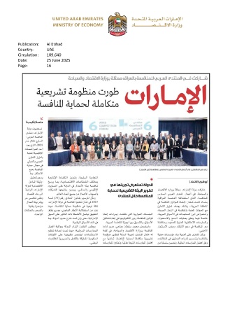 Publication: Al Etihad Country: UAE Circulation: 109,640 Date: 25 June 2025 Page: 16