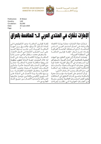 Publication: Al Watan Country: UAE Circulation: 83,000 Date: 25 June 2025 Page: 1