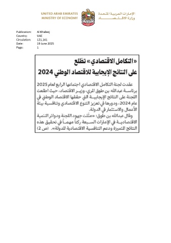 Publication: Al Khaleej Country: UAE Circulation: 121,141 Date: 19 June 2025 Page: 1