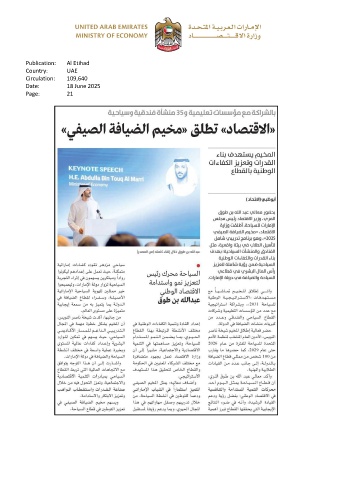 Publication: Al Etihad Country: UAE Circulation: 109,640 Date: 18 June 2025 Page: 21