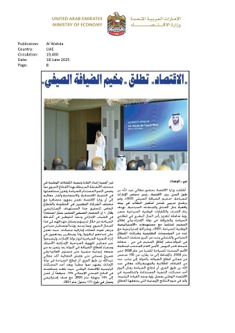 Publication: Al Wahda Country: UAE Circulation: 19,400 Date: 18 June 2025 Page: 8