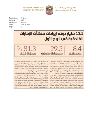 Publication: Al Bayan Country: UAE Circulation: 88,000 Date: 18 June 2025 Page: 1