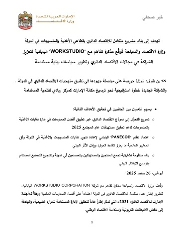 زيزعتل ةينابايلا " WORKSTUDIO " عم مهافت ةركذم ع قو ت ةحايسلاو داصتقلاا ةرازو