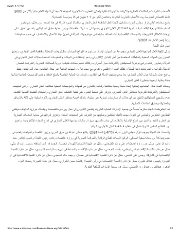 تﺎﻓدﮭﺗﺳﻣ ءوﺿ ﻲﻓ ،رﺎﻣﺛﺗﺳﻻاو لﺎﻣﻋﻷا ﺔﺋﯾﺑ زﯾزﻌﺗ ﻲﻓ ﺔﻟودﻟا تﺎﮭﺟوﺗ ﻊﻣ ﻰﺷﺎﻣﺗﯾ ﺎﻣﺑ ،ﺔﻠﺻﻟا تاذ ﺔﯾدﺎﺻﺗﻗﻻا تﺎﺳﺎﯾﺳﻟاو تﺎﻌﯾرﺷﺗﻠﻟ لﺎﺛﺗﻣﻻا تﺎﺟرد