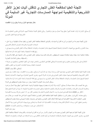 مﻋد لﻼﺧ نﻣ ،ددﺻﻟا اذھ ﻲﻓ ﺔﻟودﻟا دوﮭﺟﻟ ًﻻﺎﻣﻛﺗﺳا يرﺎﺟﺗﻟا شﻐﻟا ﺔﺣﻓﺎﻛﻣﻟ ﺎﯾﻠﻌﻟا ﺔﻧﺟﻠﻟا لﯾﻛﺷﺗﺑ ءارزوﻟا سﻠﺟﻣ رارﻗ ﻲﺗﺄﯾ" :ﮫﺗدﺎﻌﺳ ﻊﺑﺎﺗو