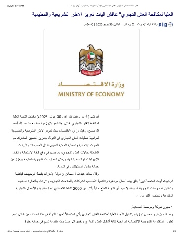 مﻋد لﻼﺧ نﻣ ،ددﺻﻟا اذھ ﻲﻓ ﺔﻟودﻟا دوﮭﺟﻟ ًﻻﺎﻣﻛﺗﺳا ﻲﺗﺄﯾ يرﺎﺟﺗﻟا شﻐﻟا ﺔﺣﻓﺎﻛﻣﻟ ﺎﯾﻠﻌﻟا ﺔﻧﺟﻠﻟا لﯾﻛﺷﺗﺑ ءارزوﻟا سﻠﺟﻣ رارﻗ نأ فﺎﺿأو