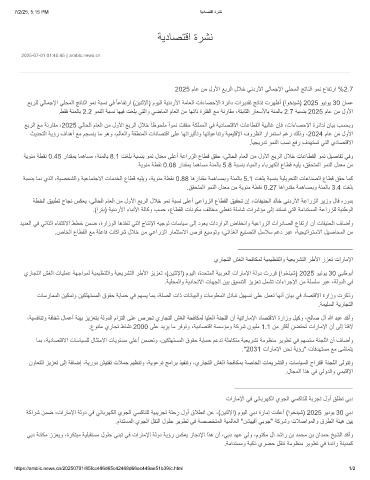 2025 مﺎﻋ نﻣ لوﻷا ﻊﺑرﻟا لﻼﺧ ﻲﻧدرﻷا ﻲﻟﺎﻣﺟﻹا ﻲﻠﺣﻣﻟا ﺞﺗﺎﻧﻟا وﻣﻧ عﺎﻔﺗرا %2.7