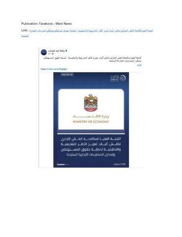 Publication: Facebook – Wam News Link: ةيراجتلا تاسراملما نيكمتو نيكلهتسلما قوقح ةيامحل .. ةيميظنتلاو ةيعيرشتلا رطلأا زيزعت تايلآ شقانت يراجتلا شغلا ةحفاكلم ايلعلا ةنجللا ةميلسلا